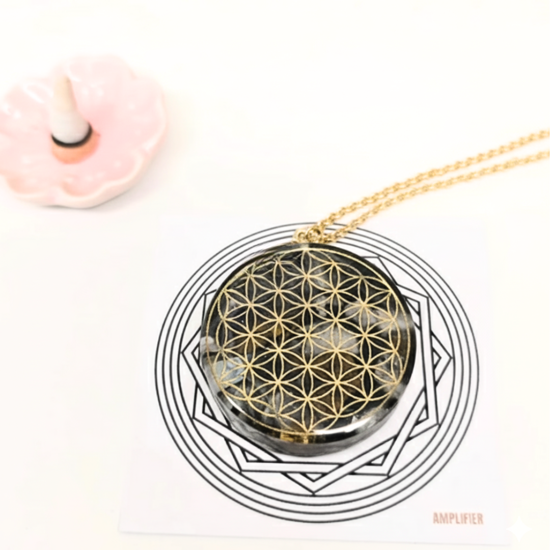 - Place the Orgonite in the center of the chart next to the Selenite included in the kit.