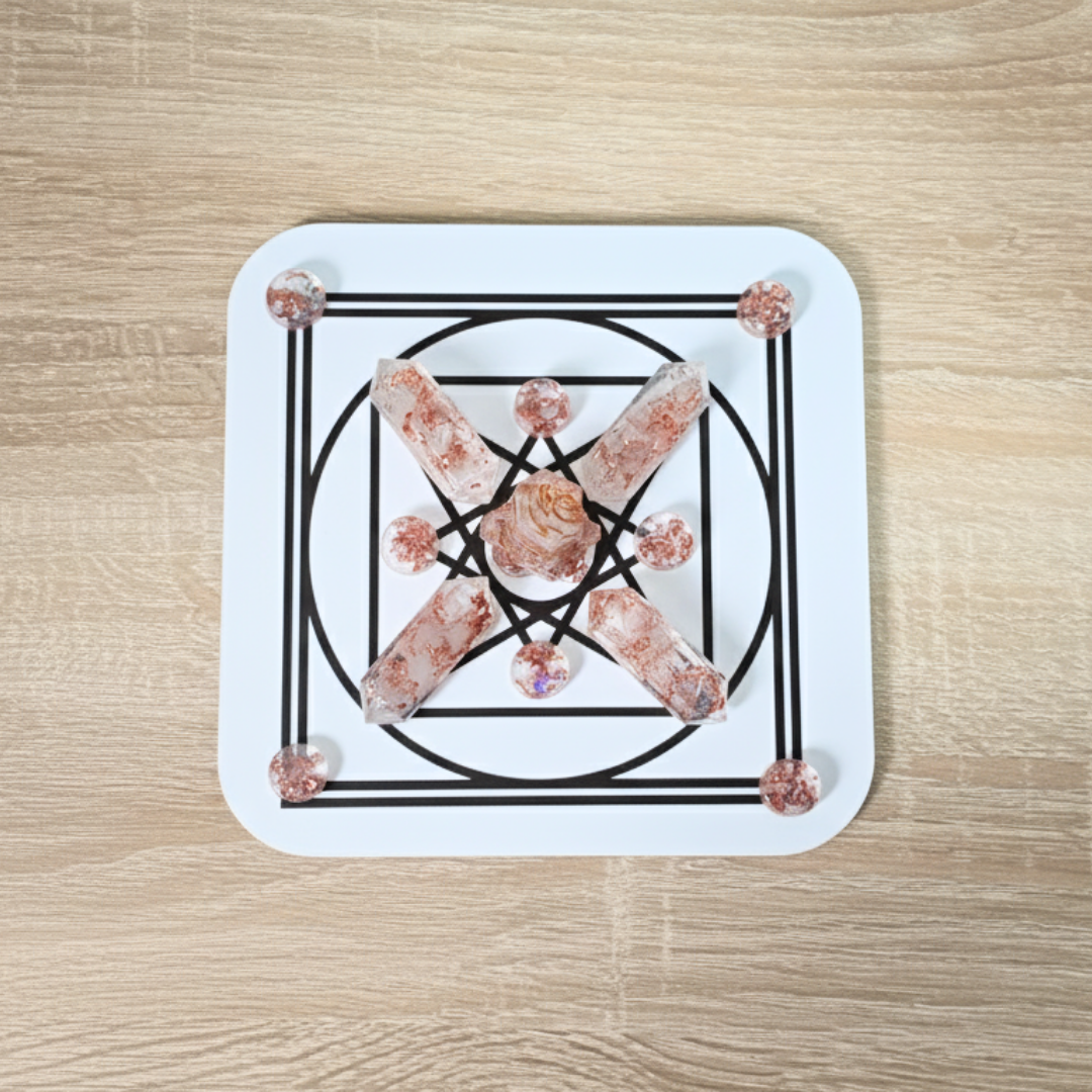 Rose Quartz promueve el amor y el cuidado, fomentando la compasión, la curación emocional y el amor propio. Cuando se combina con Red Jasper, conocido por sus propiedades positivas, estables y de conexión a tierra, te sentirás más equilibrado, seguro y con una dosis extra de vitalidad. La energía orgón amplifica estos beneficios para nutrir tanto el corazón como la mente. Esta combinación ayuda no sólo a expresar todas las formas de amor, sino también a mantener la estabilidad emocional y permanecer arraigado en la positividad.