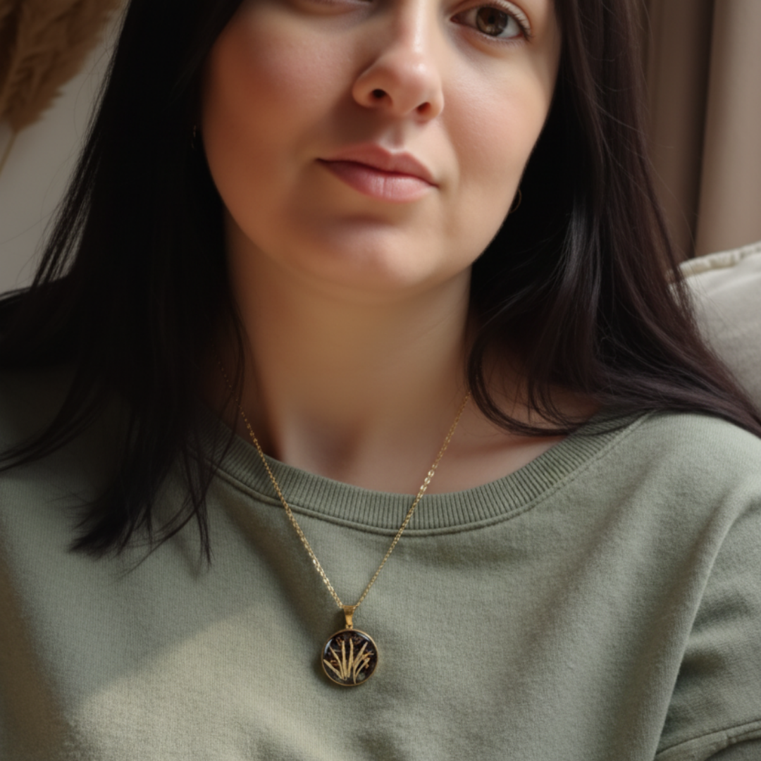 Esta peça, com a essência do alecrim, é a prova de que a alegria e a leveza podem ser carregadas contigo, todos os dias. O alecrim é uma planta solar, ligada à clareza, à alegria e ao ânimo vital, e agora a sua vibração única é tua.