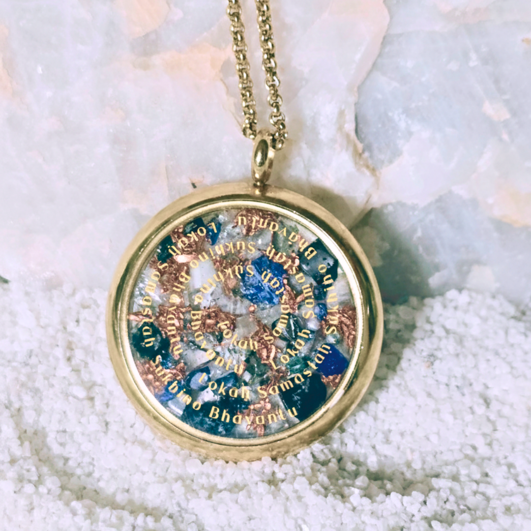 Inclui: Orgonite, fio em aço inoxidável com extensor, pingente de Selenita para limpeza energética, embalagem para oferta, kit de ativação e acesso ao e-book de cristais.