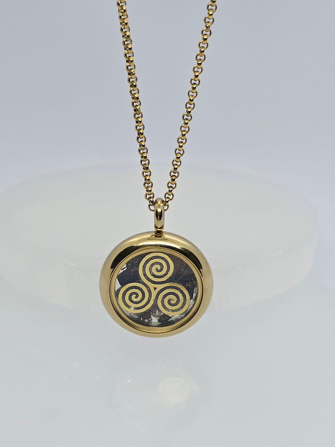 O Triskele, também conhecido como Triskelion, é um símbolo antigo composto por três espirais interligadas, cujo significado está frequentemente associado a noções de movimento e progresso; as três espirais sugerem um movimento dinâmico para a frente. Este movimento pode simbolizar o ritmo da vida com os seus ciclos de crescimento e renascimento.
